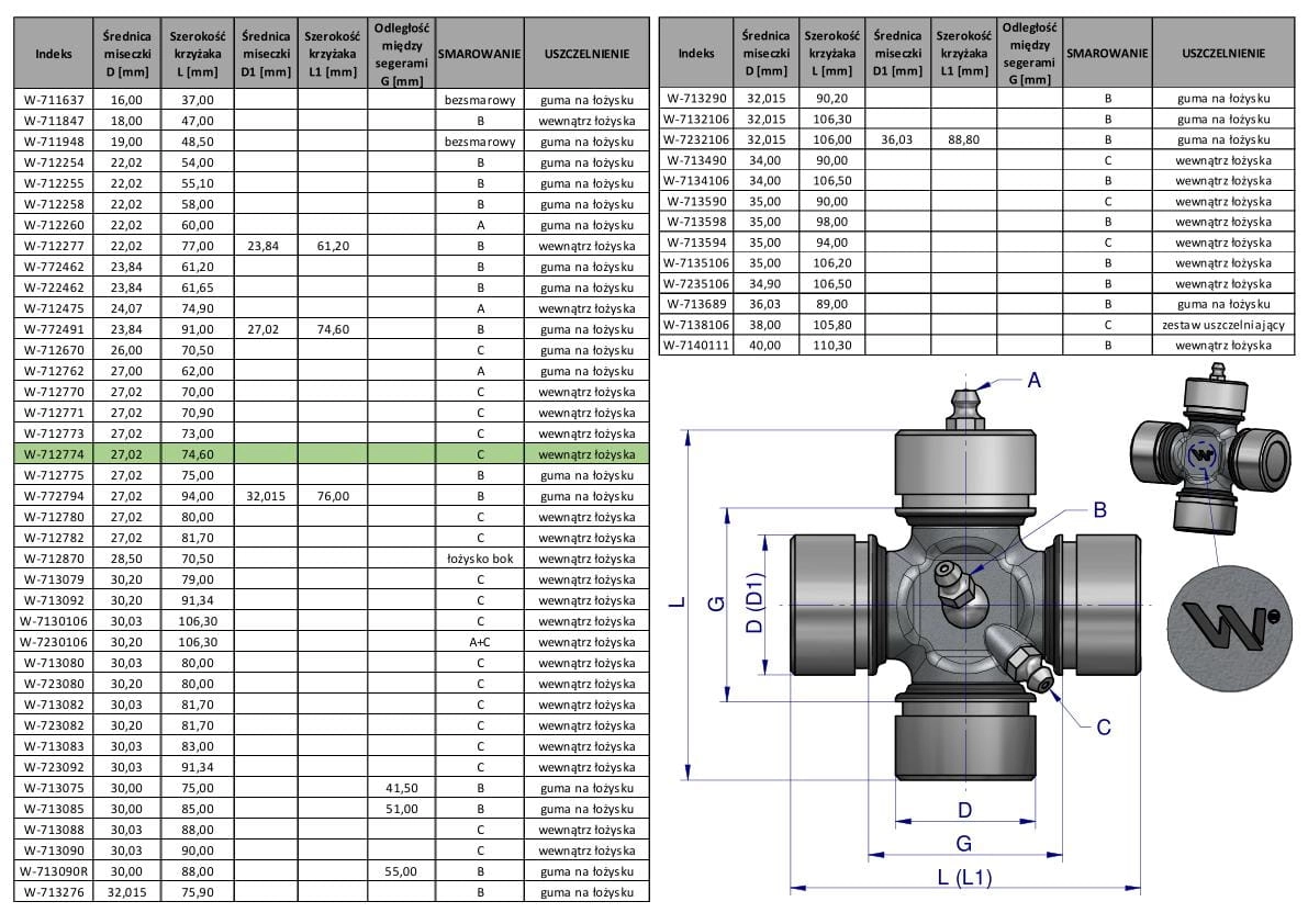Krzyżak wału 27x74.60 smarowanie boczne Waryński