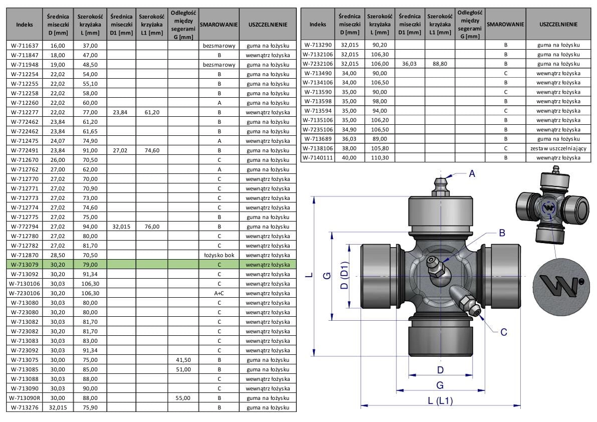 Krzyżak wału 30.20x79 smarowanie boczne Waryński