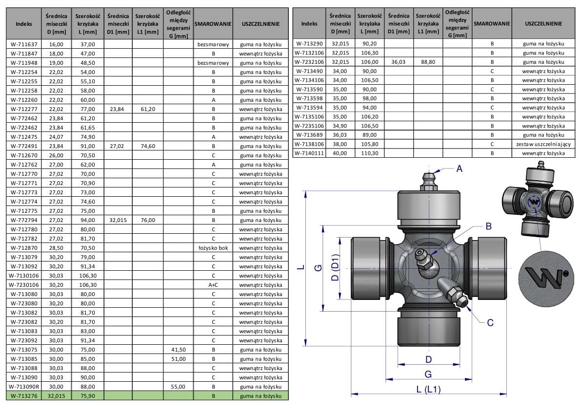 Krzyżak wału 32x75.90 smarowanie centralne Waryński