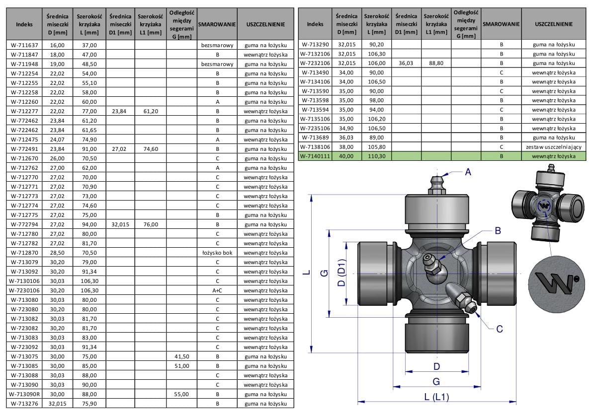 Krzyżak wału 40x110.30 smarowanie centralne Orkan Waryński