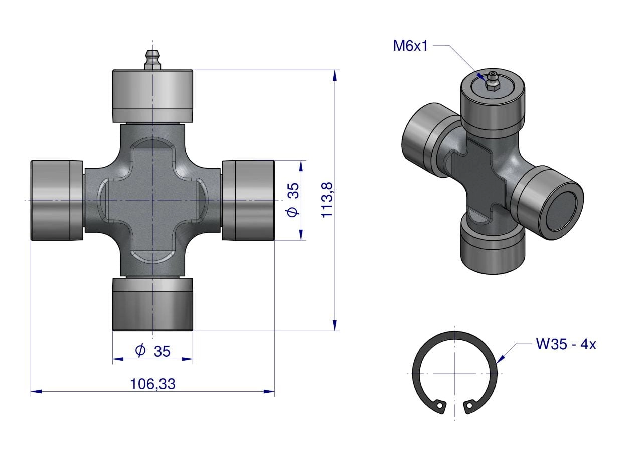 Krzyżak wału szerokokątnego 35.00×106.33 - 35.00x113.80 Seria 8 Waryński