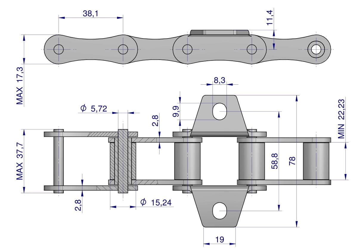 Łańcuch podajnika S52 łapka K1 co 4 ogniwa 5m Waryński