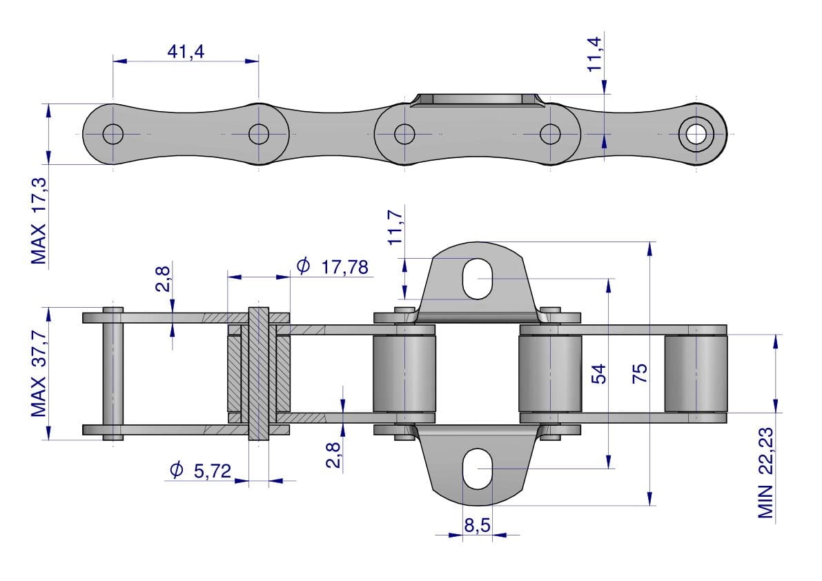 Łańcuch podajnika S55 łapka K1 co 4 ogniwa 5m Waryński