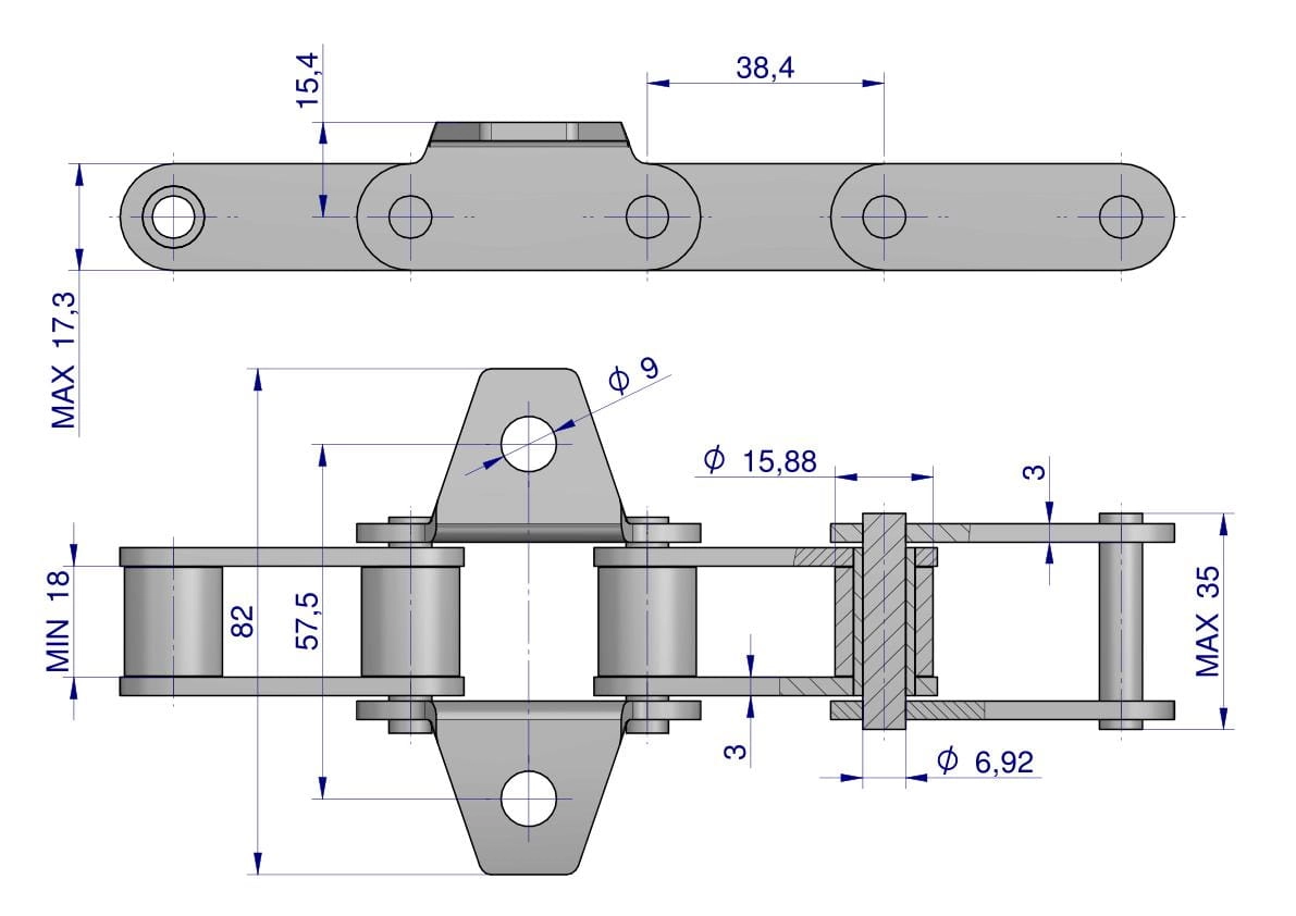 Łańcuch podajnika pochyłego 38.4V łapka K1 co 8 ogniwo 5m Waryński