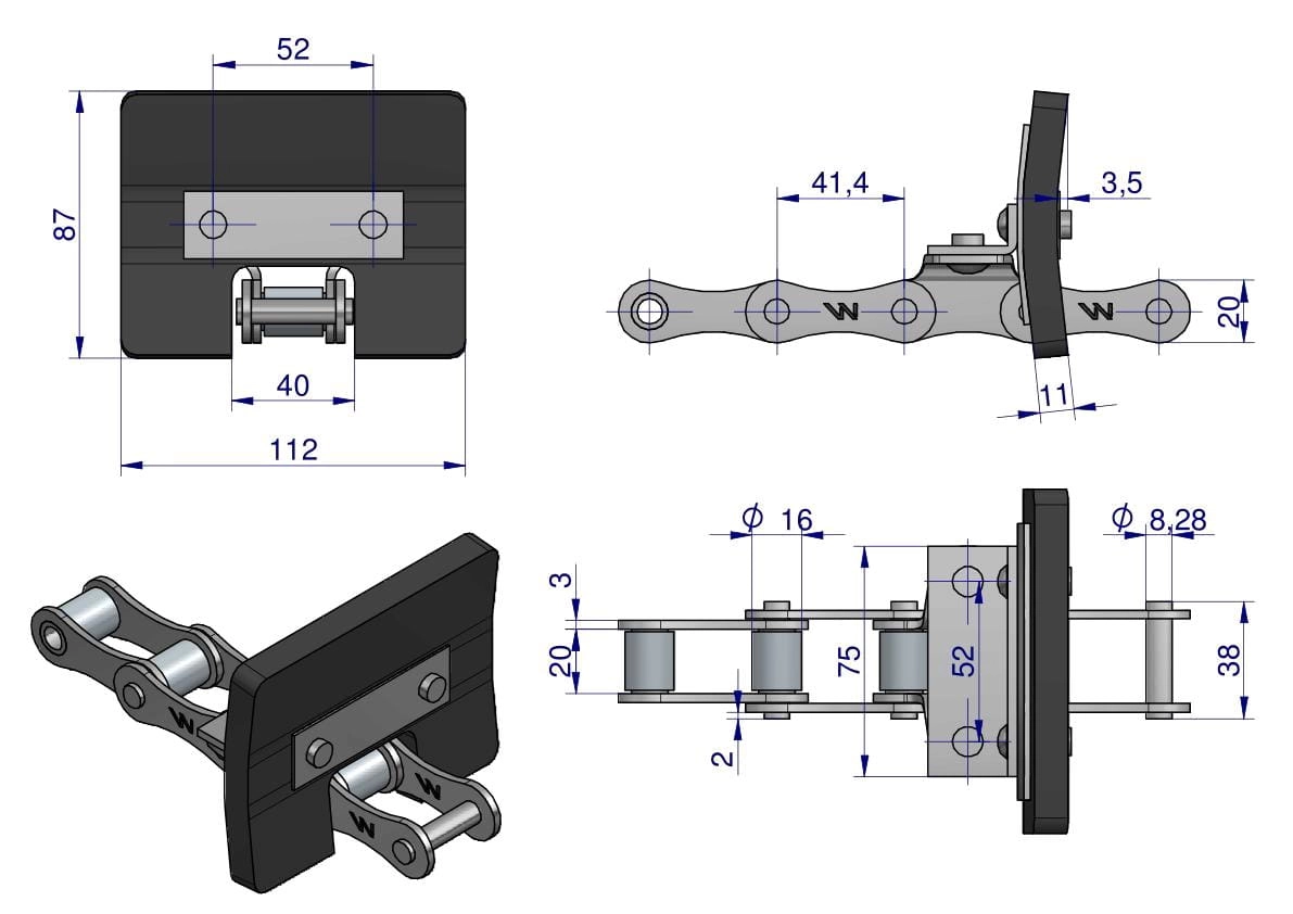 Łańcuch podajnika ziarnowego kpl. 38 łopatek 86 x 110 mm zastosowani Bizon Rekord Waryński