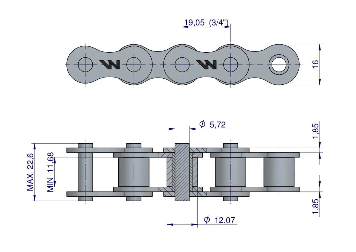 Łańcuch rolkowy 12B-1-144PZ (R1 3/4) adaptera A1H zastosowanie Rozrzutnik Waryński