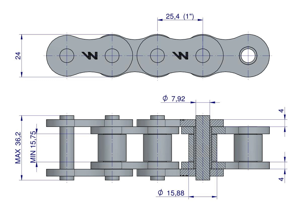 Łańcuch rolkowy 16AH-1-100PS ANSI A 80H zastosowanie Prasa Rolująca Famarol Waryński