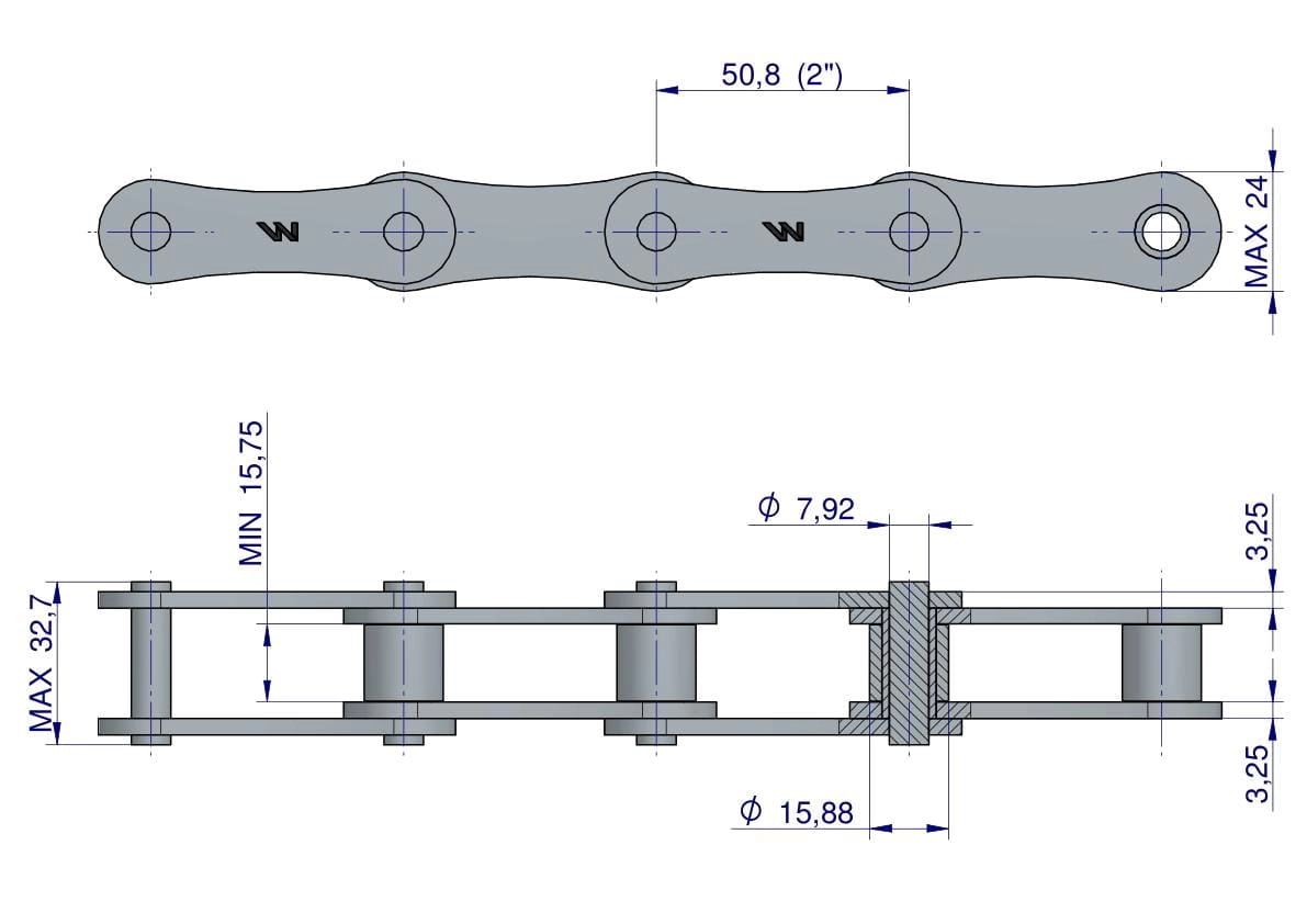 Łańcuch rolkowy 216A 2080 (R1 2) 5 m Waryński