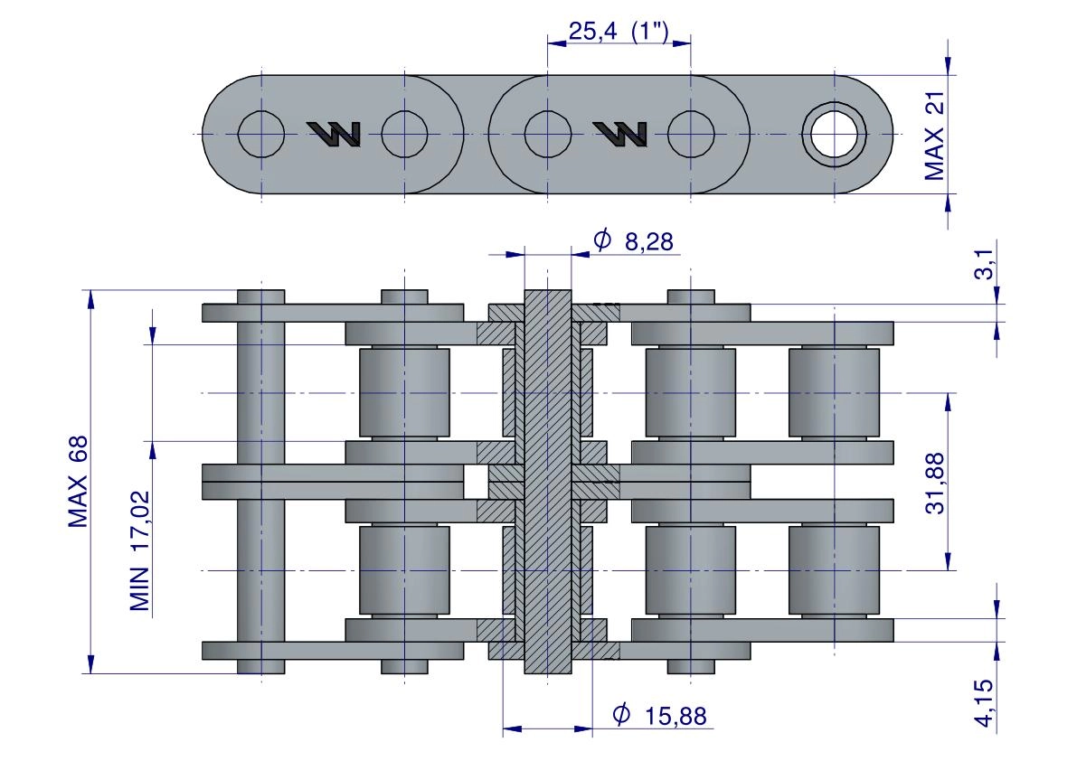 Łańcuch rolkowy prosta płytka 16B-2 (R2 1) 5 m Waryński