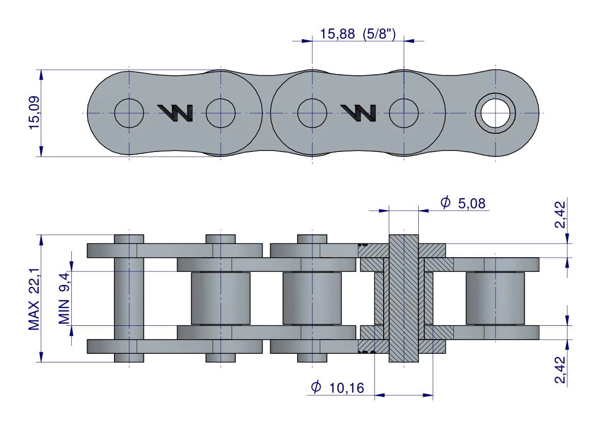 Łańcuch rolkowy wzmocniony przemysłowy 10AH-1 ANSI A 50H (R1 5/8) 5m Waryński