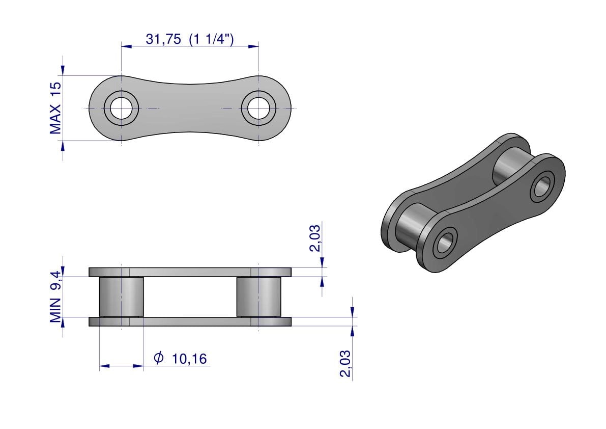 Ogniwo wewnętrzne łańcucha A2050 210A (R1 1.1/4) Waryński ( sprzedawane po 5 )