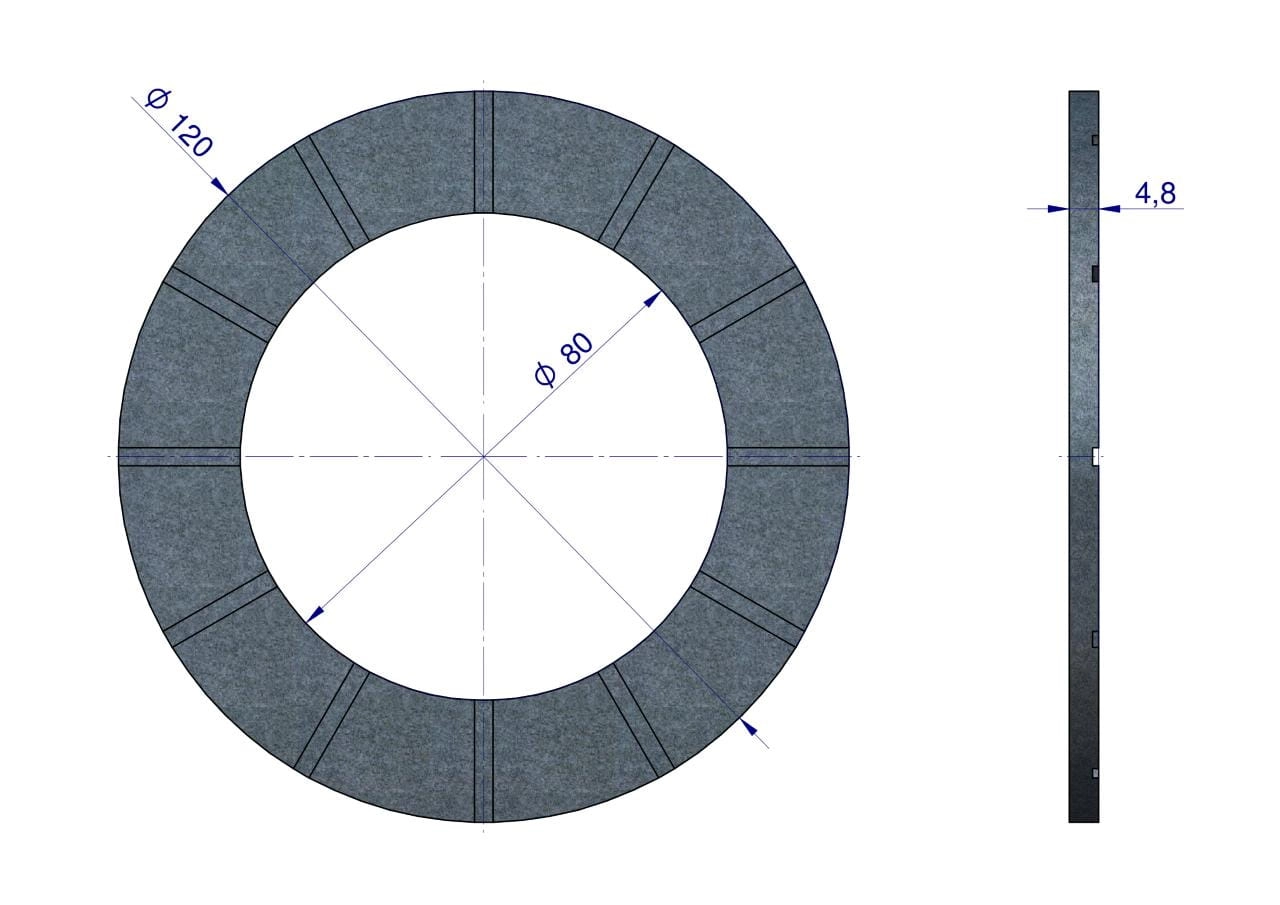 Okładzina sprzęgła ciernego wału przegubowo-teleskopowego seria 3 i 4 wymiary 120x80x4.8 WARYŃSKI