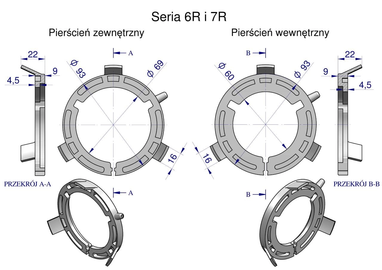 Plastikowe łożyska do obudowy wału zestaw 93x60mm i 93x69mm Seria 6R i 7R Waryński