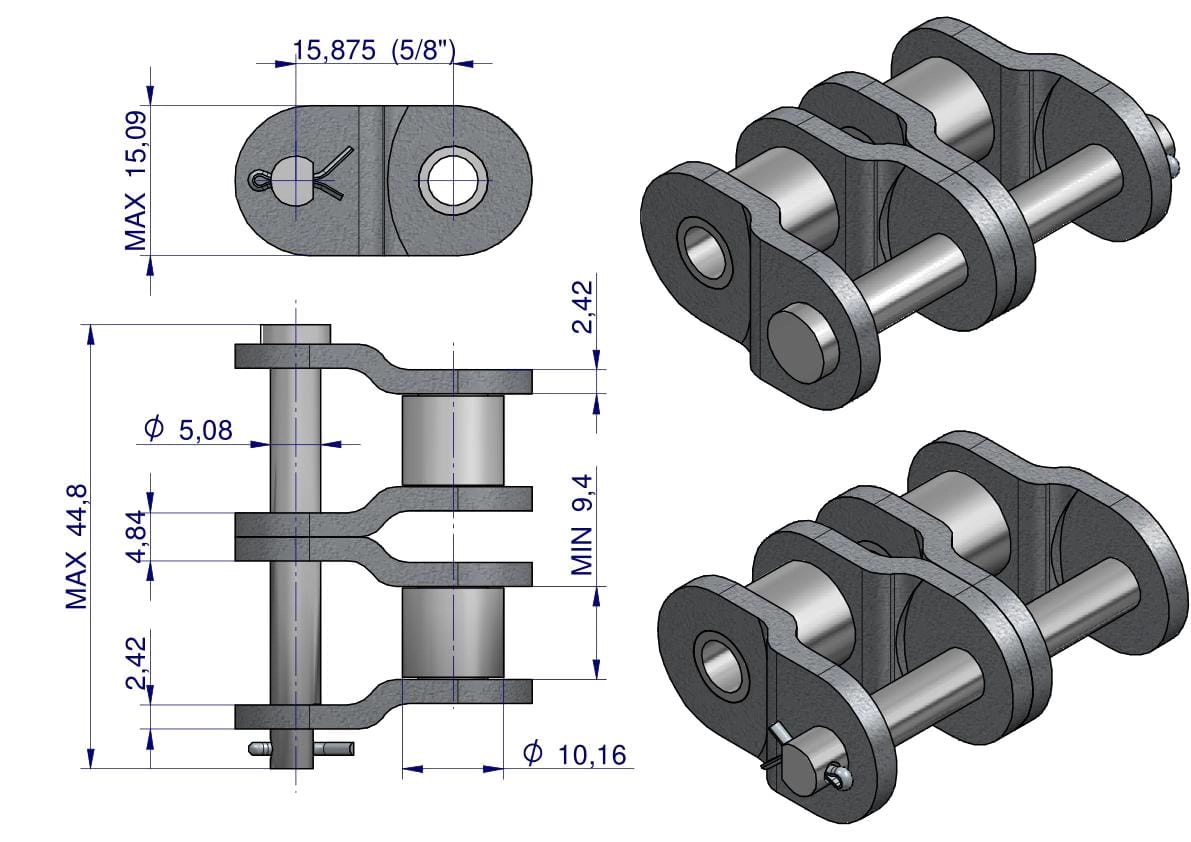 Półogniwo łańcucha przemysłowe P10AH-2 ANSI A 50H (R2 5/8) Waryński ( sprzedawane po 5 )