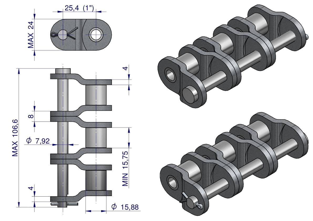Półogniwo łańcucha przemysłowe P16AH-3 ANSI A 80H (R3 1) Waryński ( sprzedawane po 5 )