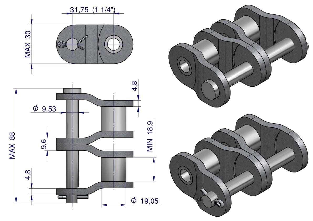 Półogniwo łańcucha przemysłowe P20AH-2 ANSI A 100H (R2 1.1/4) Waryński ( sprzedawane po 3 )