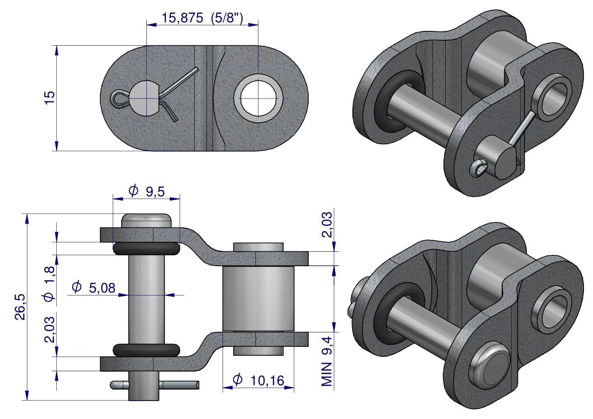 Półogniwo łańcucha z oringiem ANSI A 50 (R1 5/8) Waryński ( sprzedawane po 5 )