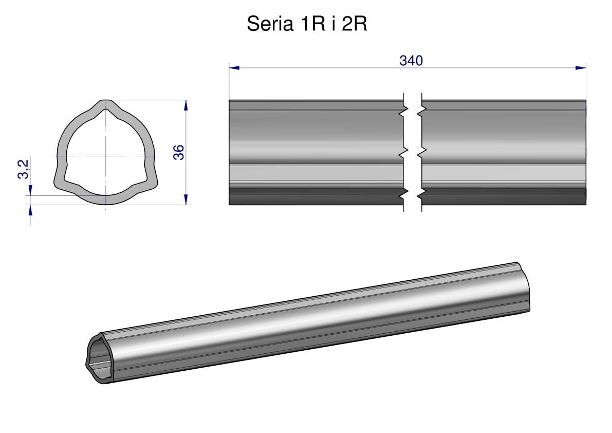 Rura wewnętrzna Seria 2R, rura zewnętrzna Seria 1R do wału 460 przegubowo-teleskopowego 36x3.2 mm 340 mm WARYŃSKI