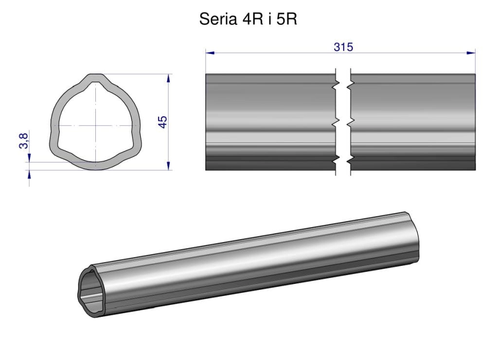 Rura wewnętrzna Seria 4R i 5R do wału 460 przegubowo-teleskopowego 45x3.8 mm 315 mm WARYŃSKI