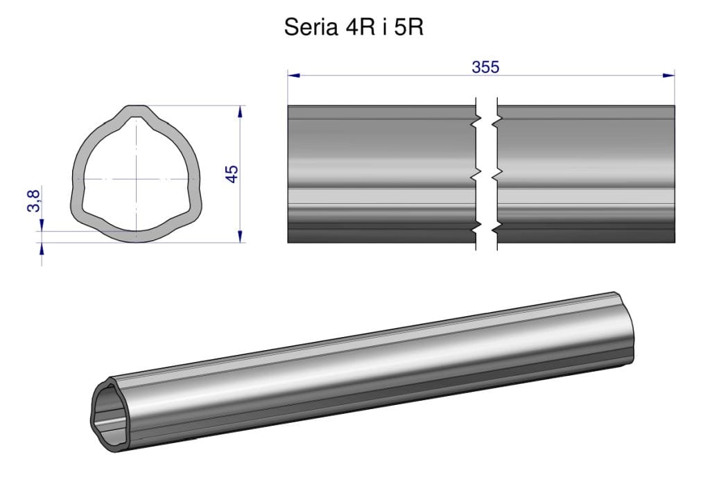 Rura wewnętrzna Seria 4R i 5R do wału 510 przegubowo-teleskopowego 45x3.8 mm 355 mm WARYŃSKI