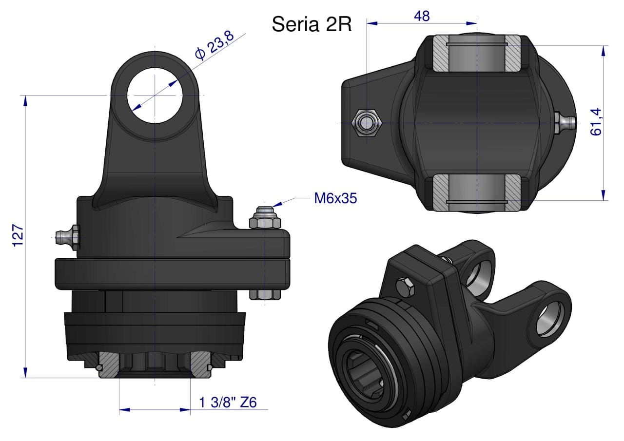 Sprzęgło na kołek wału Seria 2R 900Nm - 24x61 - 1 3/8 Z6 WARYŃSKI