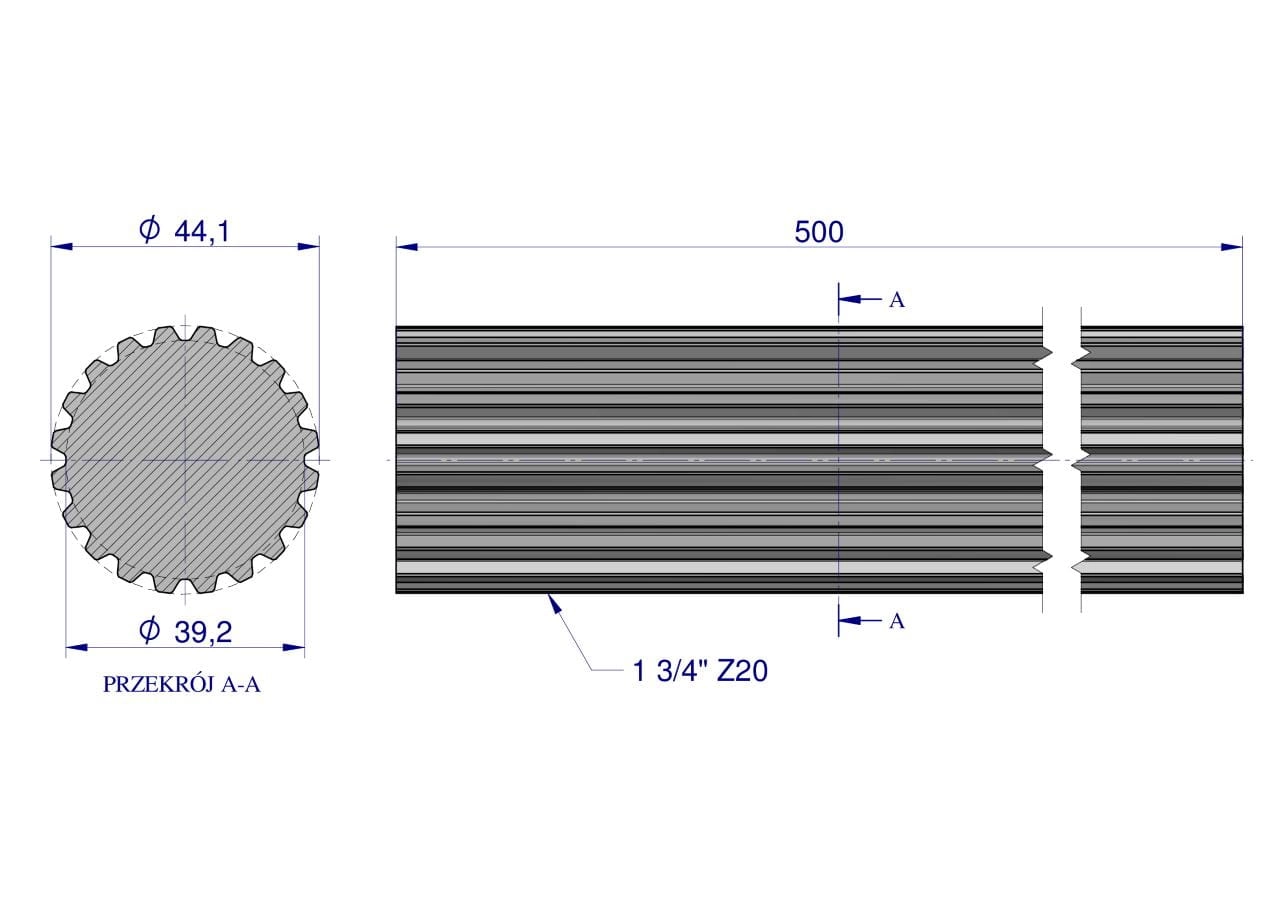 Wałek, WOM frezowany całościowo 500mm Z20 - 1 3/4, Waryński