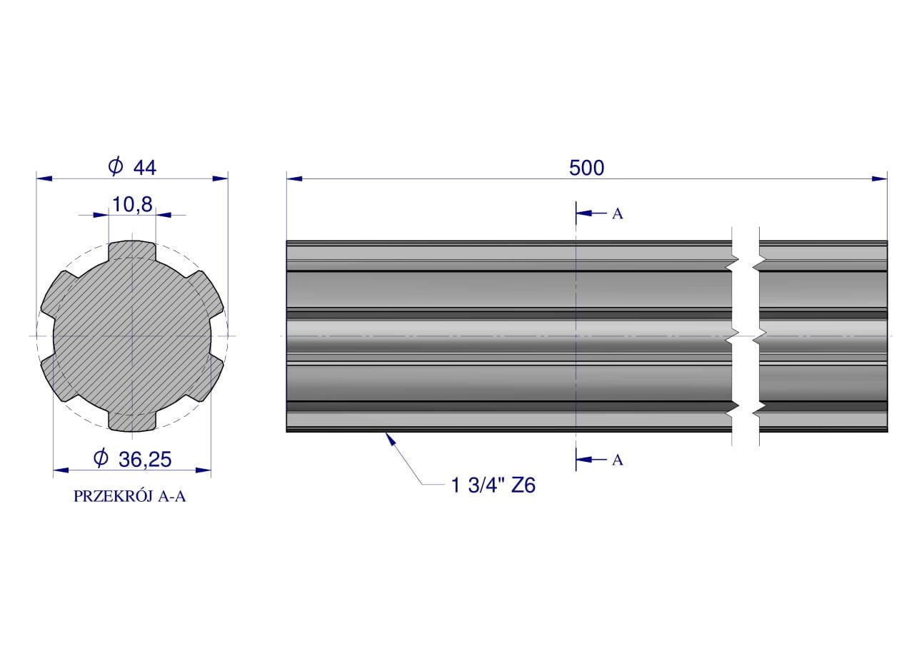 Wałek, WOM frezowany całościowo 500mm Z6 - 1 3/4, Waryński