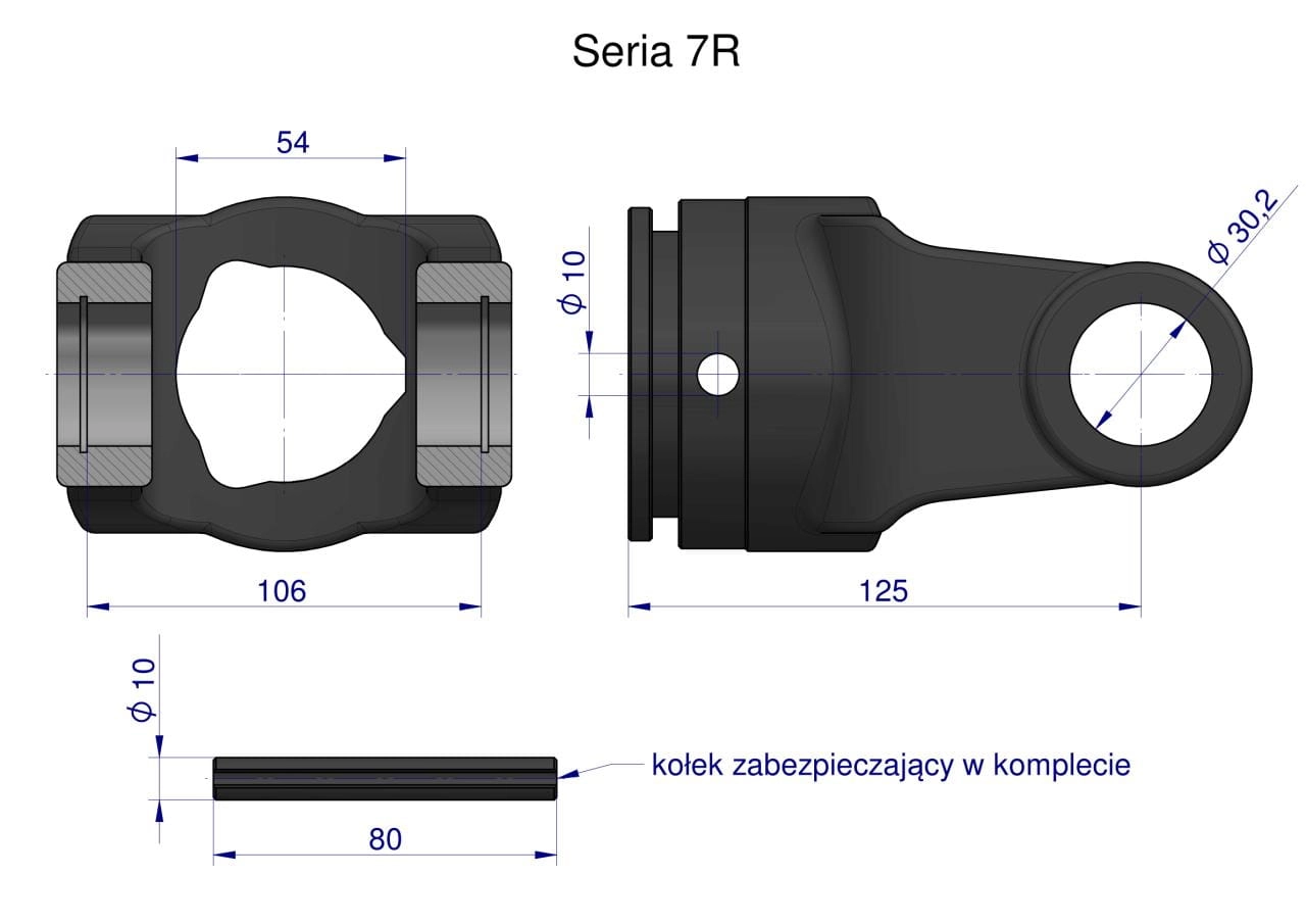 Widłak rury zewnętrznej 54x4 krzyżak 30x106 Seria 7R Waryński