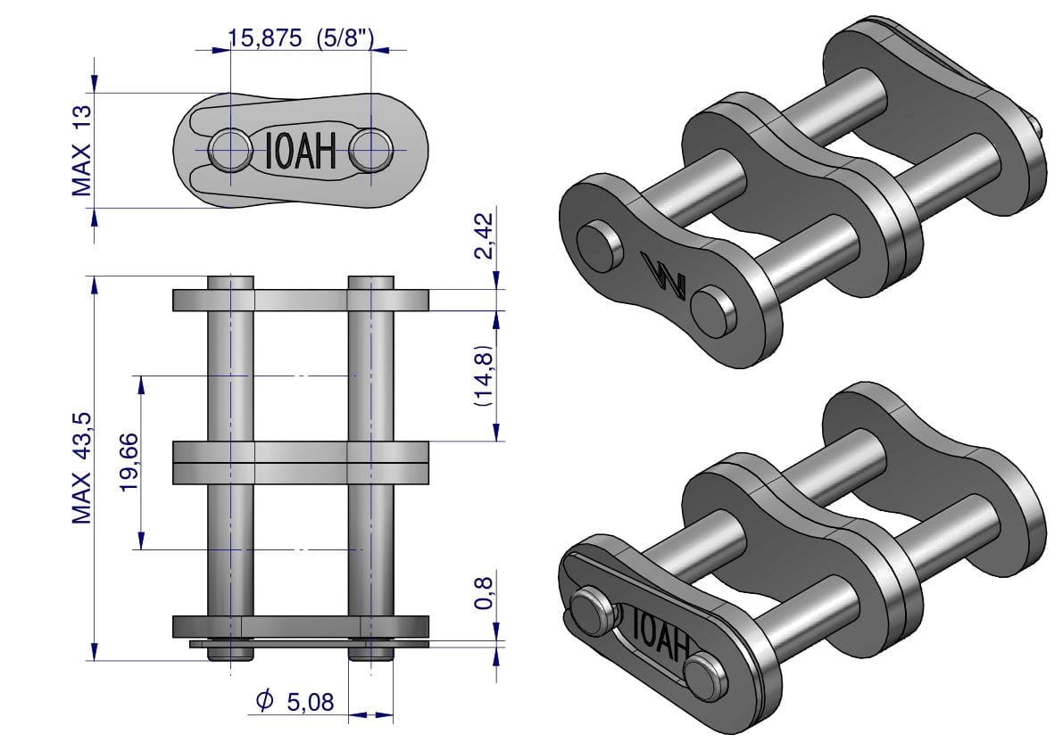 Zamek łańcucha przemysłowego Z10AH-2 ANSI A 50H (R2 5/8) Waryński ( sprzedawane po 5 )