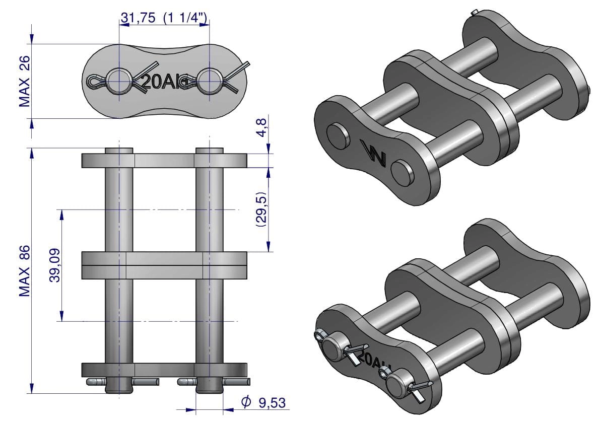 Zamek łańcucha przemysłowego Z20AH-2 ANSI A 100H (R2 1.1/4) Waryński ( sprzedawane po 3 )